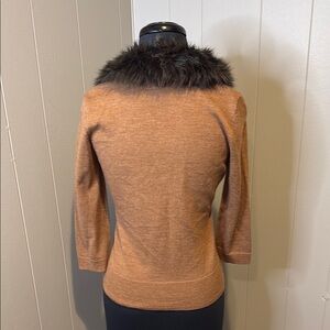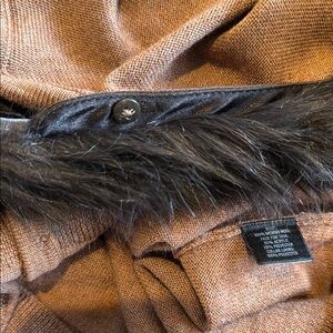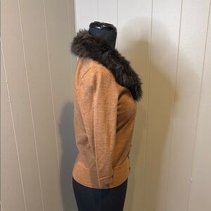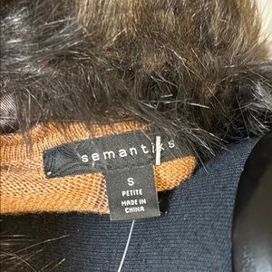 Semantiks Women’s Petite Small Tan Cardigan with Luxurious Faux Fur Collar