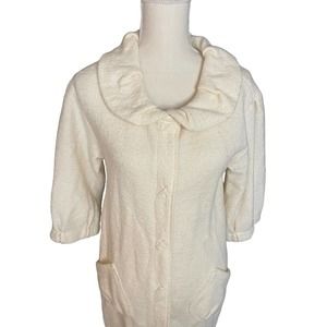 Semantiks Womens Snap Button Sweater Duster 3/4 Sleeve Pockets Size XS Cream