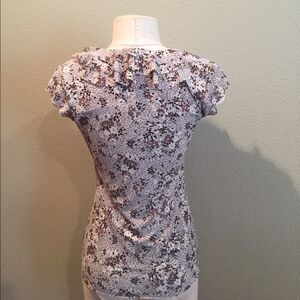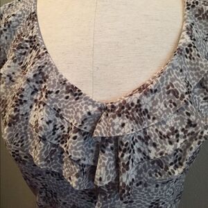 Gorgeous Semantiks top (from Nordstrom) in like new condition. This top is beautiful and soft. 100% nylon. The colors are white, grey brown and black. Ruffles around the collar and sleeve make this top really unique and sweet. Please feel free to ask any questions 🌺