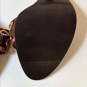 Step out in style with these elegant beaded burgundy sandals, featuring intricate embellishments. Perfect for any occasion. Never worn. See photos.