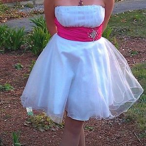 White & pink semi formal/ holiday dress. Strapless, size 7/8 worn once. Paid $100 asking $30 (needs cleaning)