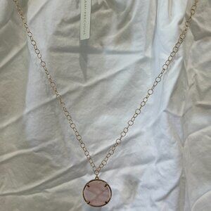 Semi Precious Pink Stone with gold tinted cable chain. Pink Stone has chip on one side but not noticeable when wearing.