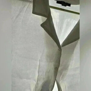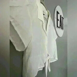 ❤️ Semi Sheer White Button & Tie in Front Collared Crop Medium