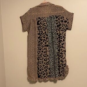 Sheer Ruffled Multi Media Animal Print Shirt Dress cuffed cap sleeves size small oversized button front pre owned good condition Jungle Fairy Romantic Feminine Edgy Retro Layering