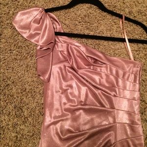 Sparkly blush colored cocktail dress (one shoulder). Warn once to a special event; like new, in perfect condition.