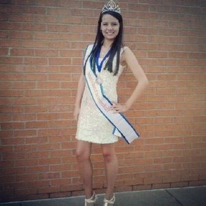 Semi formal sparkly dress with sequins w pink tint