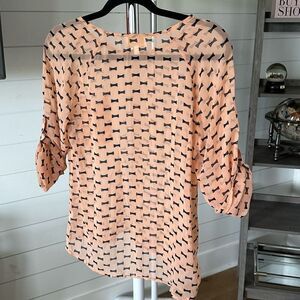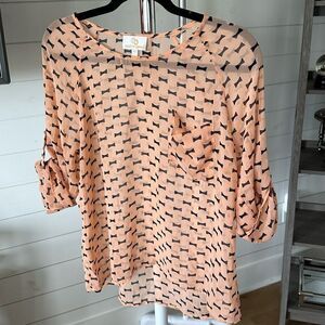 Semi sheer Collective Concepts mini bow tie print 3/4 sleeve blouse sz XS