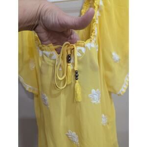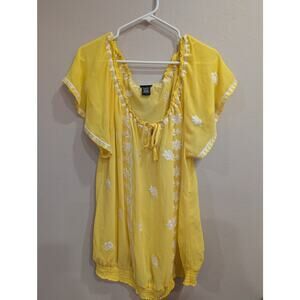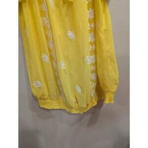 Semi sheer short sleeve peasant style top in yellow w/white floral embroidery 2X