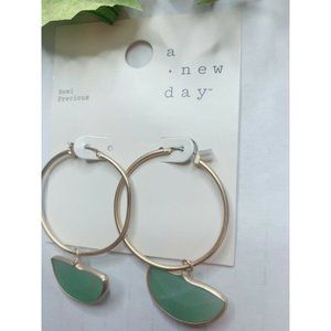Semi-Precious Stone Aventurine Malachite Glass Drop Hoop Earrings Green …