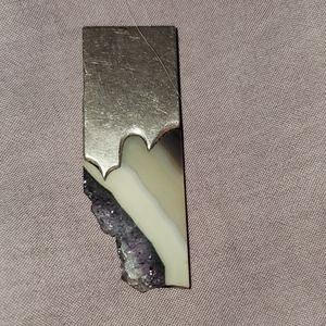 Pendant is 100% Sterling silver it has a slice of Amethyst and 3 other stones that grew together... 100% real An absolute beautiful piece not light it actually has a little weight to it... It truly is a one of a kind piece they is not another 1 like it...FIRM PRICE