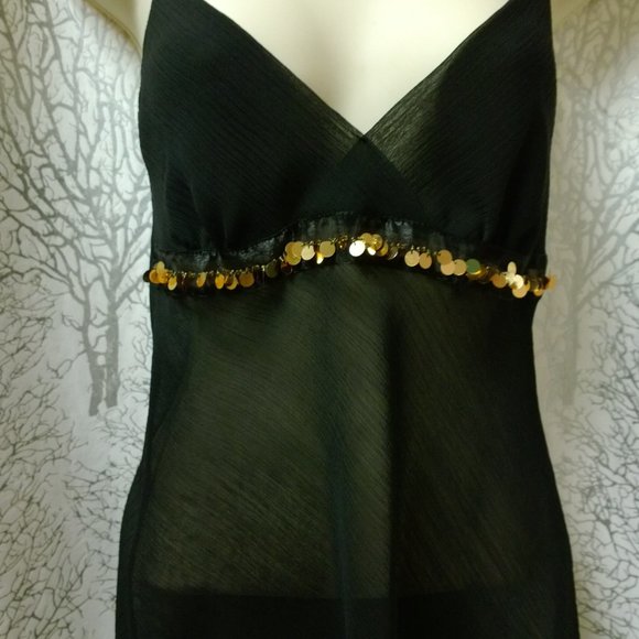 Semi-Sheer Black top with Gold sequin accent NWOT
