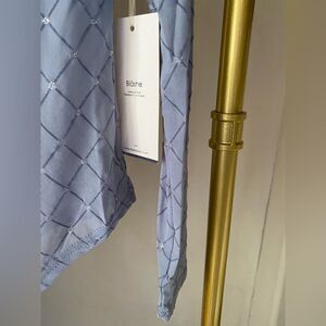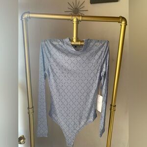 New tights blouse with silver dots high neck in baby blue. New. It has 2 buttons in the crotch to close