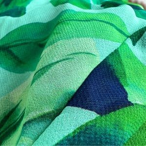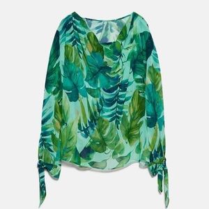 Semi-Sheer Green Blouse With Leaf & Tropical Print