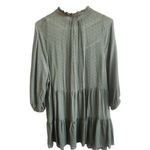 Cato Semi-Sheer-Dotted Swiss Cottagcore Dress-Moss Grn-Tiered-Lace/PinTuck Details M