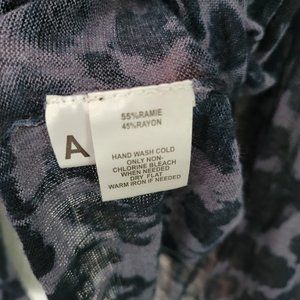 Super light, semi-sheer open front navy patterned cardigan by LOFT. Two front pockets. Ramie/cotton mix Size L Length 29"