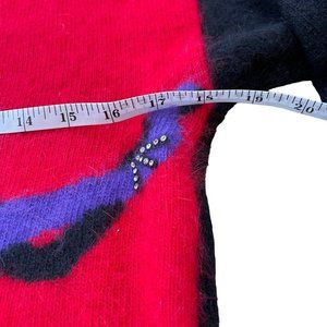 Semplice Sweater Tango Dancing Sequins Angora Lambswool Colorblock wearable Art Size P Vintage