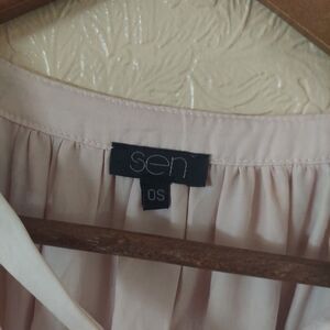 Sen Flowy Blush Pink Blouse Tie Neck One Size