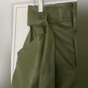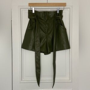 Sen Vegan Leather Paperback Army Green Tie Front Belted Shorts w/ Pockets Small