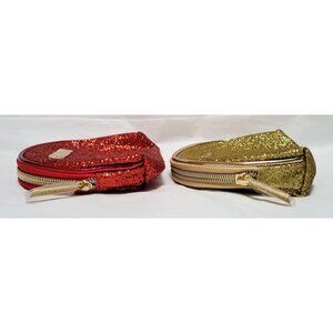 Add some sparkle to your routine. These red and gold glitter cosmetic bags are ready to hold your beauty secrets—and maybe a snack.