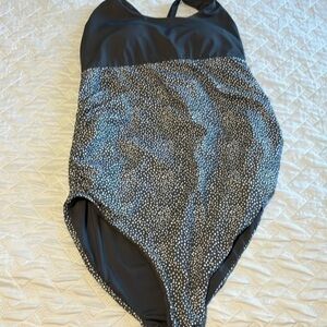 Senita Athletics Gray Dotted One Piece Swimsuit