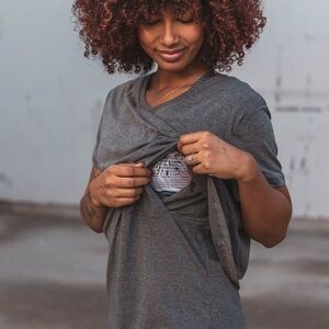 Brand new with tags Senita Athletics Nursing Short Sleeve Tee Shirt in Heathered gray. Size XS. Pre-shrunk. Loose fit. Layered front. Round neck. Buttery soft. Stretchy. NWT.