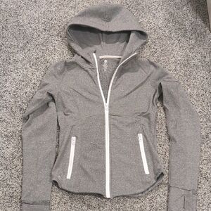 Senita Athletics offers a sleek athletic cut in a versatile gray color. Designed with a hood, contoured seams, and thumb holes. Like New!