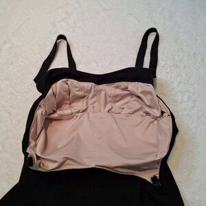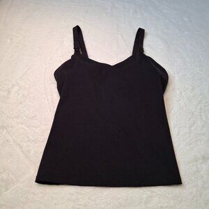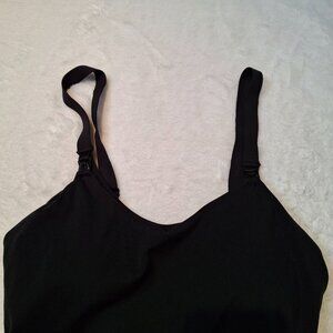 Pre-owned, good condition. No visible holes or stains. Normal signs of wear. Black w/ nude maternity built-in sports bra. Tank top style. Adjustable/clip-on straps. Maternity bra unpadded cups. Size per tag: M (Medium). Fabric: 75% Polyester/ 25% Spandex. Machine washable. Size per tag does not guarantee desired fit, please see pictures for measurements.