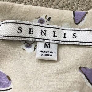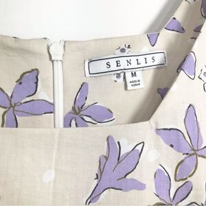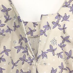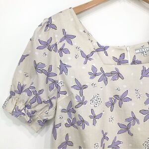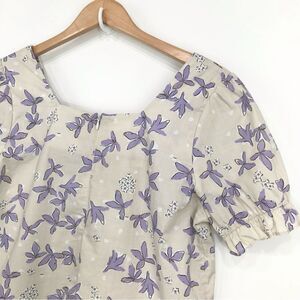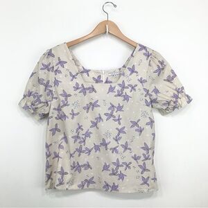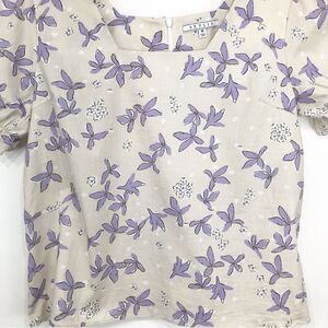 Senlis Anthropologie 100% Cotton Purple Cream Floral Puff Sleeve Blouse