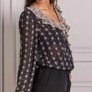 🆕Senlis Moroccan Tile Paisley Clara Ruffle Top S🆕