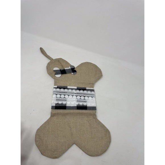 Senneny Pet Dog Christmas Stocking Burlap Lace Black White Check NEW Bone.