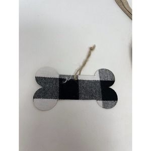 Senneny Pet Dog Christmas Stocking Burlap Lace Black White Check NEW Bone