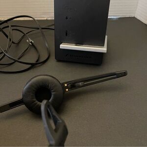 Sennheiser headset in black. Comes with a charging dock and power adapter.