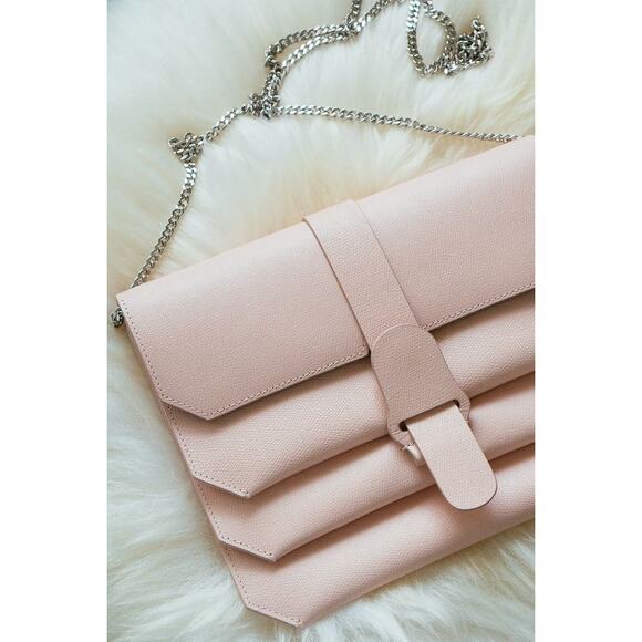 Crafted from genuine Italian pebbled leather with a water-, stain-, and scratch-resistant suede flap, this luxe crossbody from Senreve offers beauty and function in a feminine silhouette. Featuring a structured shape with a supple micro-suede interior, it’s designed for everyday elegance. The removable top clutch converts to a bracelet pouch for versatile wear, while the collar stud belt flap keeps your essentials secure. With a streamlined outer pocket and minimalist hardware, this convertible crossbody is a perfect blend of sophistication and practicality.