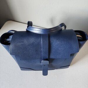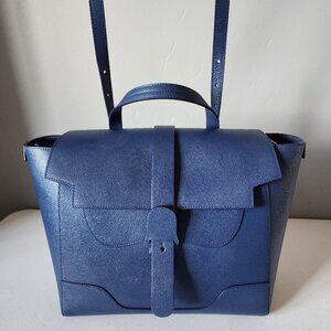 "EUC" Beautiful Looking Blue Pebbled Leather Large Maestra Bag By Senreve. Zip Top Closure with Flap Latch, Snap Down Zipper Sides, Top Loop Carry or Adjustable Pull Through D Rings Shoulder or Crossbody Straps, Clean Powder Blue Suede Interior with Large 13" Padded Lap Top/Tablet Sleeve with Snap Down Protection, 6 Slip Pockets & 1 Large Zip Compartment, Gold-tone Hardware & Stamped Logo/Branding, Metal Feeted Bottom, Leather Back Slip Pocket, Bag Measures approx. 10" T X 15.5" W/ across Top X6" D, Excellent Condition, No Wearing/Corners/Stains, Used Once:) Rt.945.00 approx. * This is The Perfect Travel/Business Bag Holds all the Essentials.