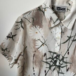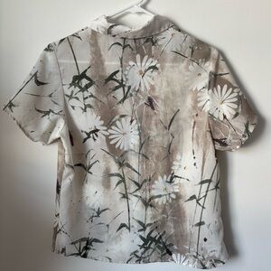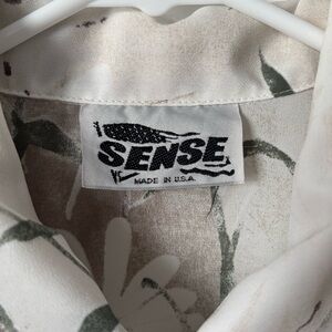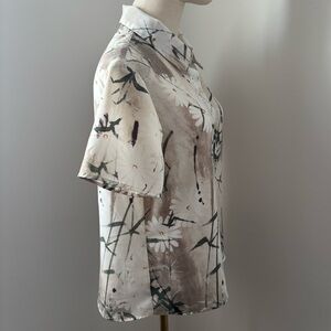 Sense Vintage Short Sleeve Ivory w/ Paint Design Funky Button Down Top