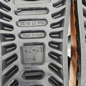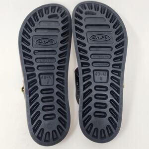 Sensi Sandals Women 9M Taormina Prestige Thong Sandal in Black and gold waterproof rubber. Gizeh style
