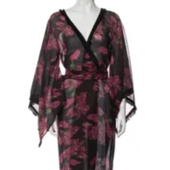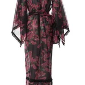 Sensi Studio Robe Black Floral Print - Raw-Edge Trim