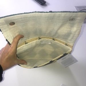 Sensi Studio Rombos Woven-Diamond Toquilla Straw Clutch w/pom pom trim - NWT