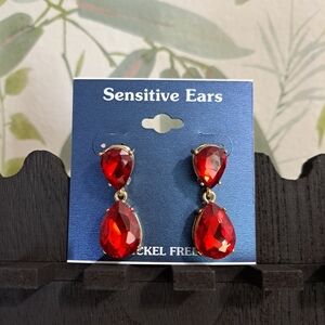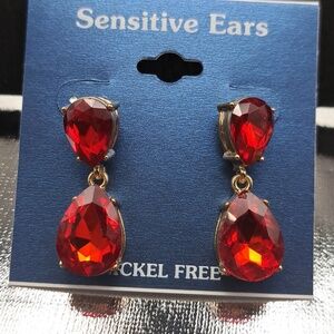 Sensitive Ears Red Chunk Rhinestone Post Back