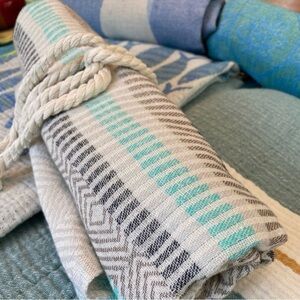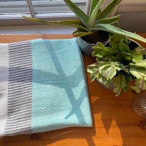 NEW Soft Gray, Tan, Turquoise Design Throw Blanket for Sensitive Skin