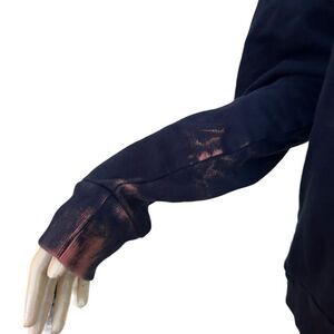 Condition is okay - bleach stain on right cuff sleeve - see pics.