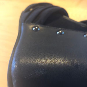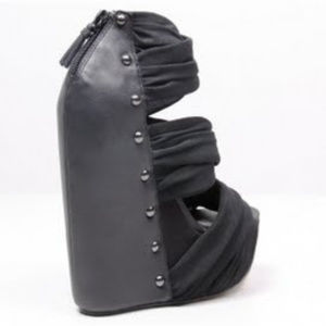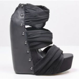 6" platform, black fabric with leather covered wedge. Size 9 US | 39 EU