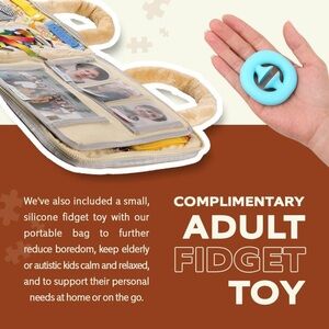 Discover tranquility with the Sensory Fidget Blanket. Its calming beige and vibrant blue design offers soothing sensory engagement.