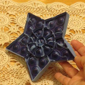 Four popper toys with bubbles for lots of fun. The pretty blue, pink one has the alphabet on the bubbles so could spell things with it. Good, clean, used condition, washed in warm, soapy water. The star is kinda cool. Hadn't seen one like that. Some autistic children find these useful.