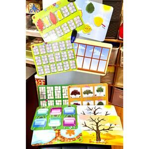 Sensory Leaves Math Activity Set: Includes 36 leaf-shaped counters, 10 double-sided activity cards, and an activity guide for pattern play and math skills.