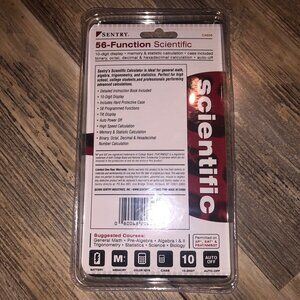 Introducing the state-of-the-art Sentry Industries Inc. 56-Function Scientific Calculator, model CA656, in a sleek black finish designed for students and professionals alike. This sophisticated calculator features a 10-digit display, offering clear visibility for complex computations. It is programmed to handle memory and statistic calculations effortlessly, ensuring a seamless user experience. One of its key attributes is its ability to perform binary, octal, decimal, and hexadecimal calculations, catering to a wide range of mathematical and engineering needs. The calculator is enclosed in a protective case, which guarantees durability and longevity. It also includes an automatic power-off function to conserve battery life, making it an economical choice for daily use.