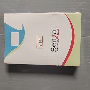 This is a Senza Jewelry set that includes a necklace and earrings. The set features a silver-tone base with red cubic zirconia stones. The necklace has a pendant with a unique design and the earrings are stud style.