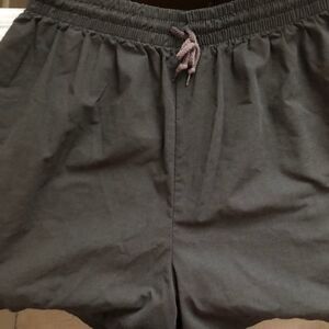 Nice black board shorts (no lining) with pockets and elastic waist. Drawstring is faded from chlorine. Very comfortable. Small mark on bottom as shown in pics. Good add on item. GUC from smoke free home.