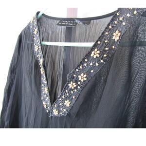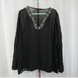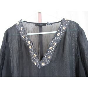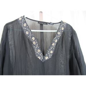 Separates By NYC Design Co. XL Black Crinkle Long Sleeve Blouse Beaded Sheer