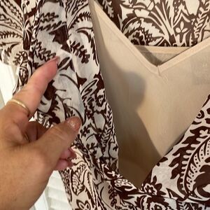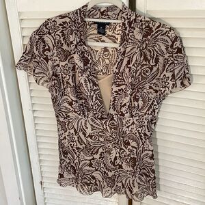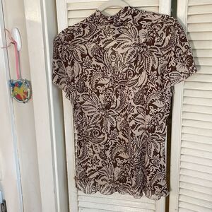 Brown and Tan sheer blouse V neck